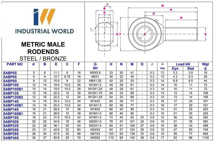 All rod ends are available in either left or right hand thread (Add the suffix “L” for left hand thread)