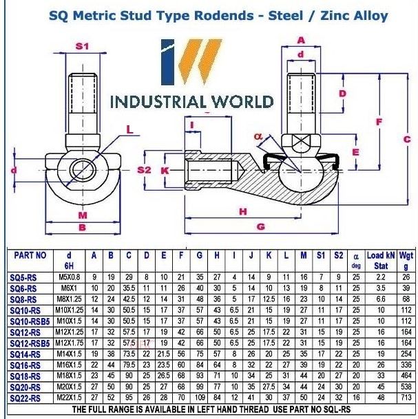 All Ball Studs are available in either left or right hand thread (Add the suffix “L” for left hand thread).
