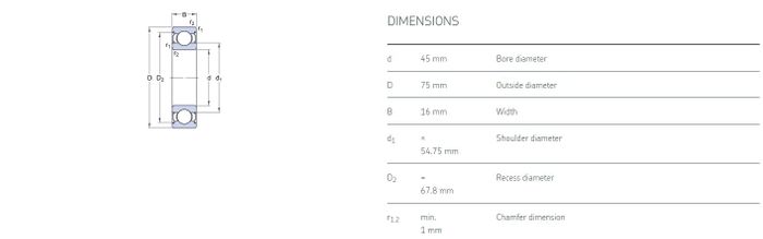 45.00 mm ID x 75.00 mm OD x 16.00 mm Width