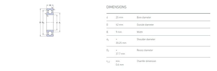 25.00 mm ID x 42.00 mm OD x 9.00 mm Width
