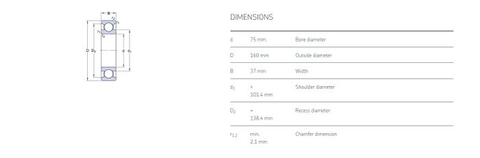 75.00 mm ID x 160.00 mm OD x 37.00 mm Width