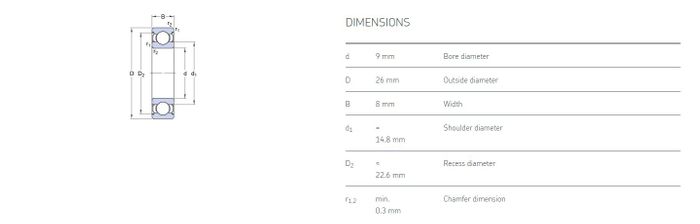 9.00 mm ID x 26.00 mm OD x 8.00 mm Width