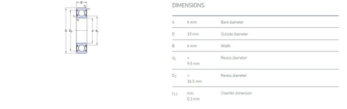 6.00 mm ID x 19.00 mm OD x 6.00 mm Width
