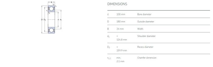 6220-2RS1 Single Row Metric Deep Groove Ball Bearing