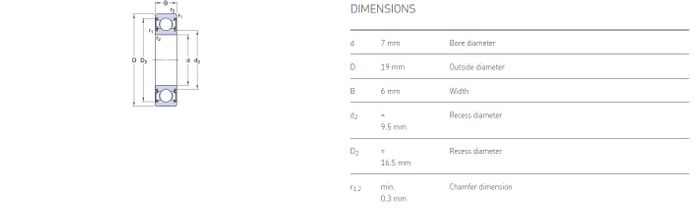 7.00 mm ID x 19.00 mm OD x 6.00 mm Width