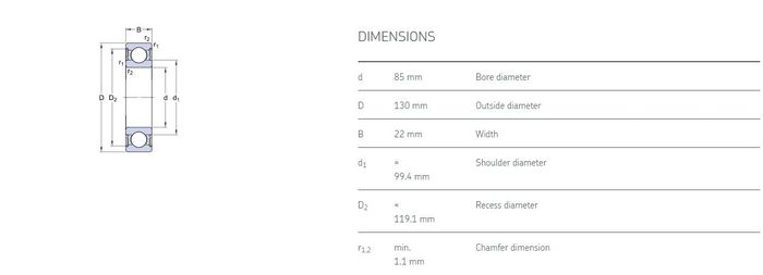 85.00 mm ID x 130.00 mm OD x 22.00 mm Width