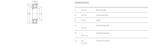 12.00 mm ID x 24.00 mm OD x 6.00 mm Width