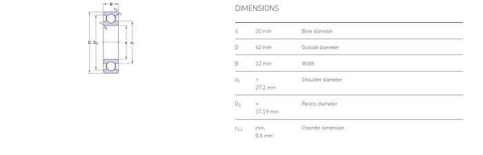 20.00 mm ID x 42.00 mm OD x 12.00 mm Width