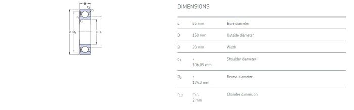 85.00 mm ID x 150.00 mm OD x 28.00 mm Width