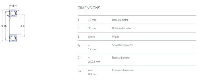 12.00 mm ID x 30.00 mm OD x 8.00 mm Width