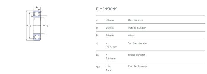50.00 mm ID x 80.00 mm OD x 16.00 mm Width