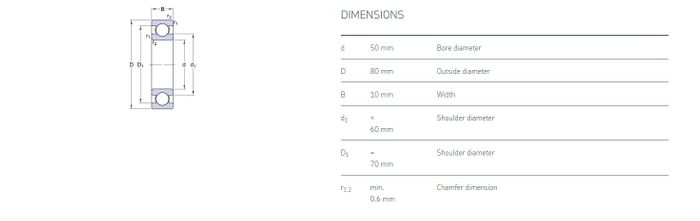 16010 Single Row Metric Deep Groove Ball Bearing