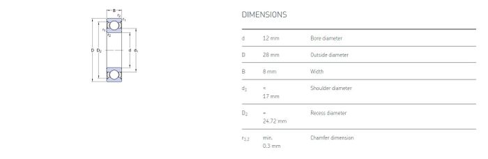12.00 mm ID x 28.00 mm OD x 8.00 mm Width