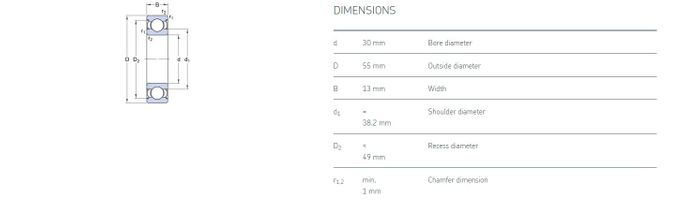 30.00 mm ID x 55.00 mm OD x 13.00 mm Width