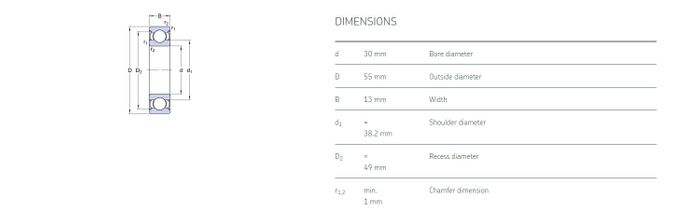 30.00 mm ID x 55.00 mm OD x 13.00 mm Width