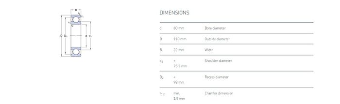 60.00 mm ID x 110.00 mm OD x 22.00 mm Width