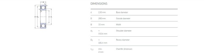 130.00 mm ID x 200.00 mm OD x 33.00 mm Width