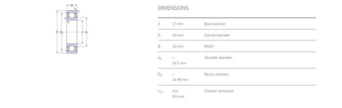 17.00 mm ID x 40.00 mm OD x 12.00 mm Width