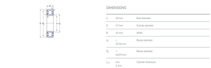 20.00 mm ID x 47.00 mm OD x 14.00 mm Width
