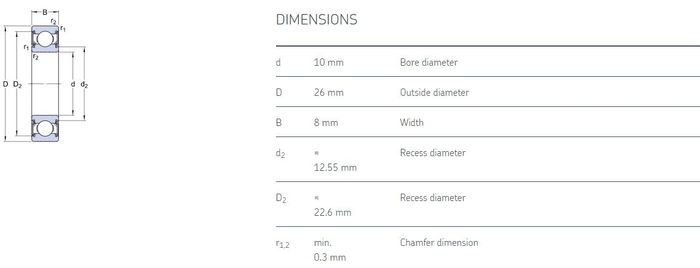 10.00 mm ID x 26.00 mm OD x 8.00 mm Width