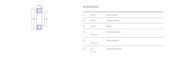 6208-Z-NR Single Row Metric Deep Groove Ball Bearing