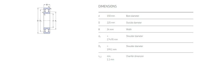 150.00 mm ID x 225.00 mm OD x 24.00 mm Width