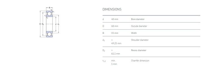 40.00 mm ID x 68.00 mm OD x 15.00 mm Width