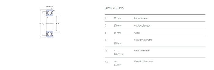 6316-2Z-C3 Single Row Metric Deep Groove Ball Bearing
