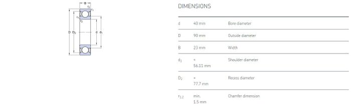 40.00 mm ID x 90.00 mm OD x 23.00 mm Width