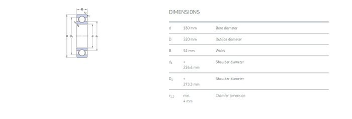 180.00 mm ID x 320.00 mm OD x 52.00 mm Width