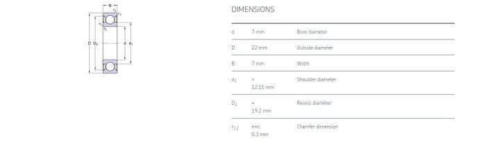 7.00 mm ID x 22.00 mm OD x 7.00 mm Width