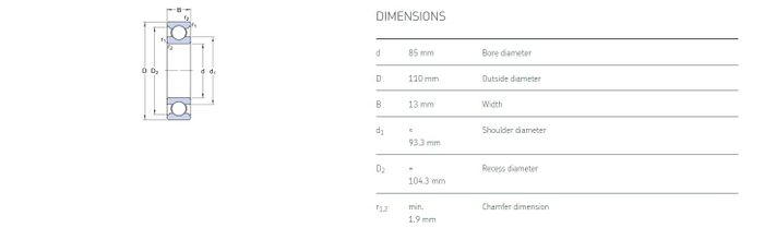 61817 Single Row Metric Deep Groove Ball Bearing