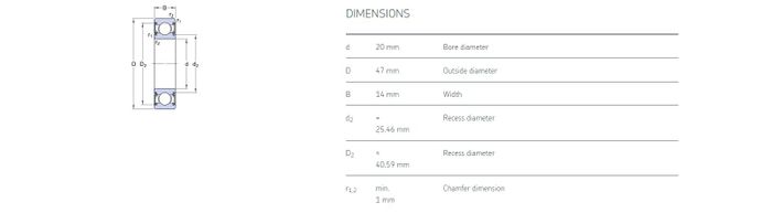 20.00 mm ID x 47.00 mm OD x 14.00 mm Width