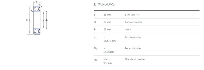 35.00 mm ID x 72.00 mm OD x 17.00 mm Width