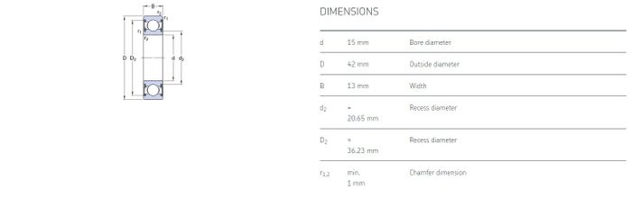 15.00 mm ID x 42.00 mm OD x 13.00 mm Width