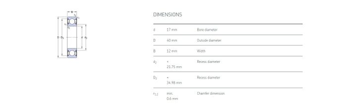 17.00 mm ID x 40.00 mm OD x 12.00 mm Width