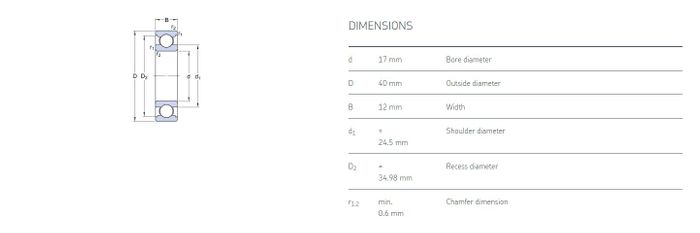 17.00 mm ID x 40.00 mm OD x 12.00 mm Width