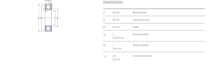 40.00 mm ID x 90.00 mm OD x 23.00 mm Width