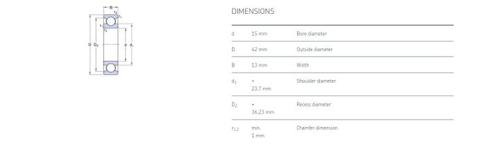 15.00 mm ID x 42.00 mm OD x 13.00 mm Width