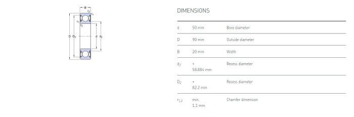 50.00 mm ID x 90.00 mm OD x 20.00 mm Width