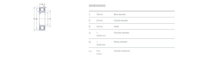 30.00 mm ID x 62.00 mm OD x 16.00 mm Width