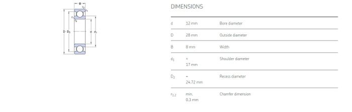 12.00 mm ID x 28.00 mm OD x 8.00 mm Width
