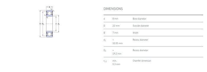 8.00 mm ID x 22.00 mm OD x 7.00 mm Width