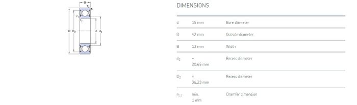 15.00 mm ID x 42.00 mm OD x 13.00 mm Width