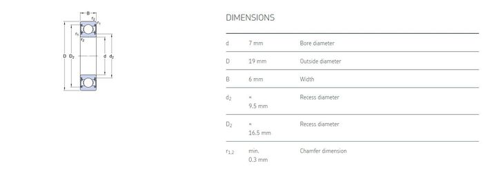 7.00 mm ID x 19.00 mm OD x 6.00 mm Width
