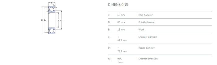 60.00 mm ID x 85.00 mm OD x 13.00 mm Width