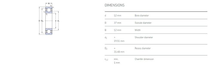 12.00 mm ID x 37.00 mm OD x 12.00 mm Width