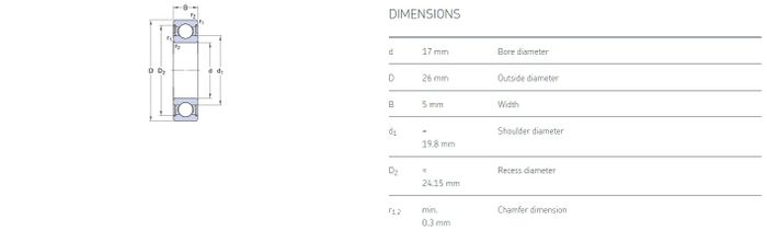17.00 mm ID x 26.00 mm OD x 5.00 mm Width