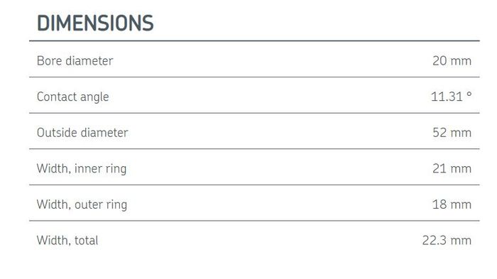 | Basic dynamic load rating | 54.3 kN |