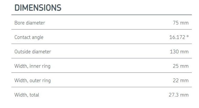 | Width, inner ring | 25 mm |